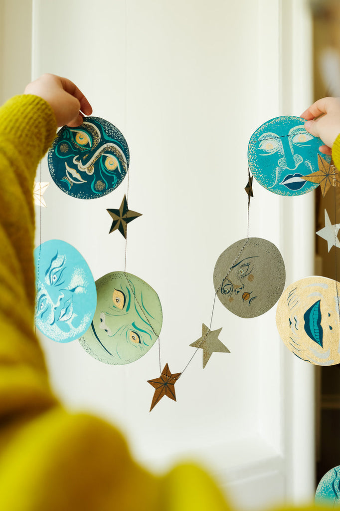 Enchanting moons and shimmering stars cast their magical glow onto the dreamers below. Includes a mix of twenty celestial themed shapes along three metres.